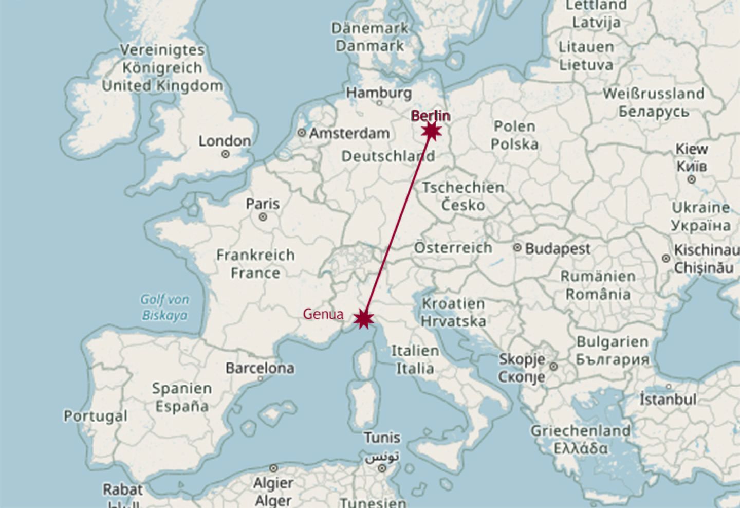 Der Rekorder bleibt auch mit der zweiten Etappe vorerst in Genua bzw. Italien. Hier wird die Box gerade an die nächste Person übergeben.