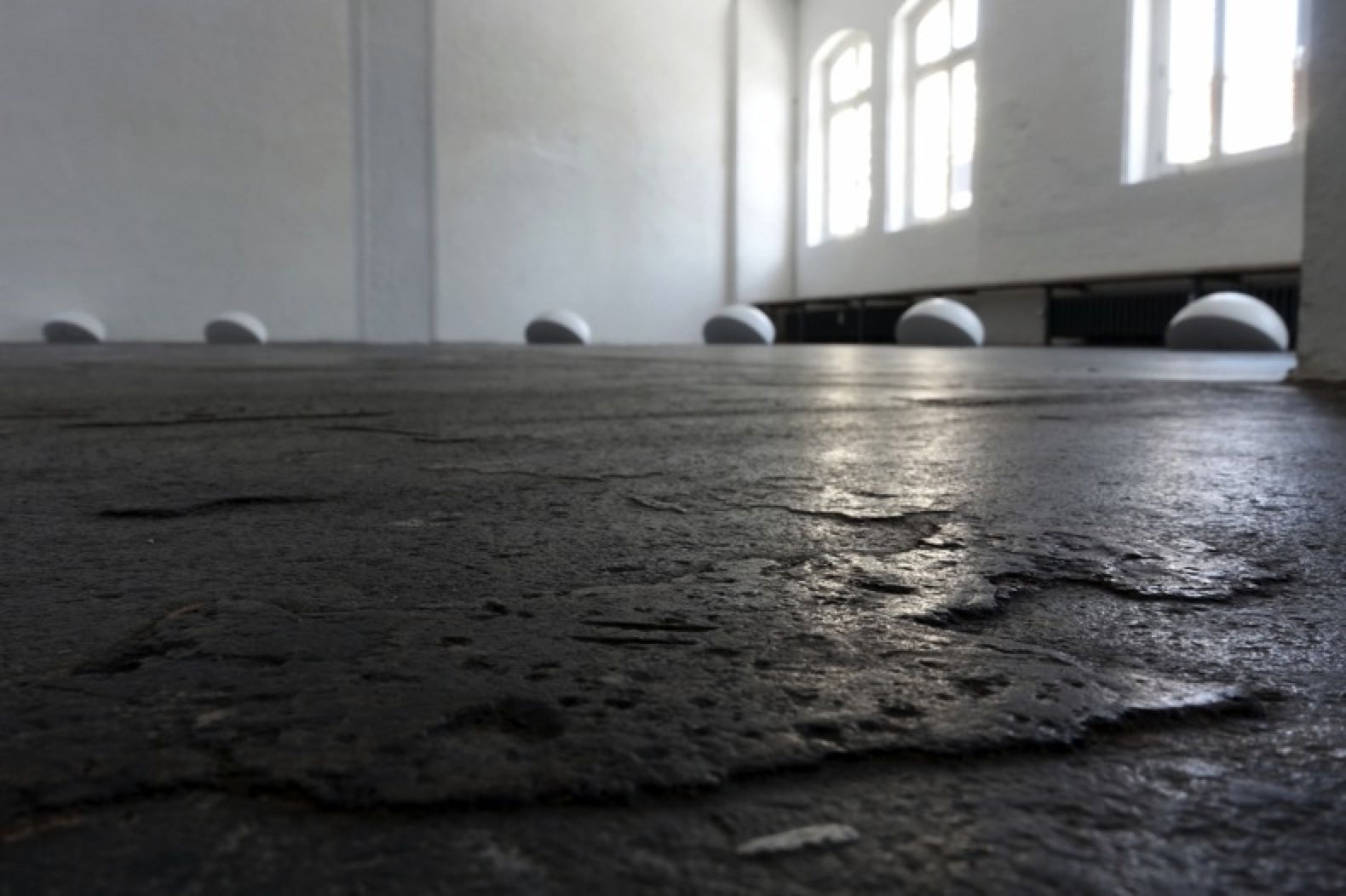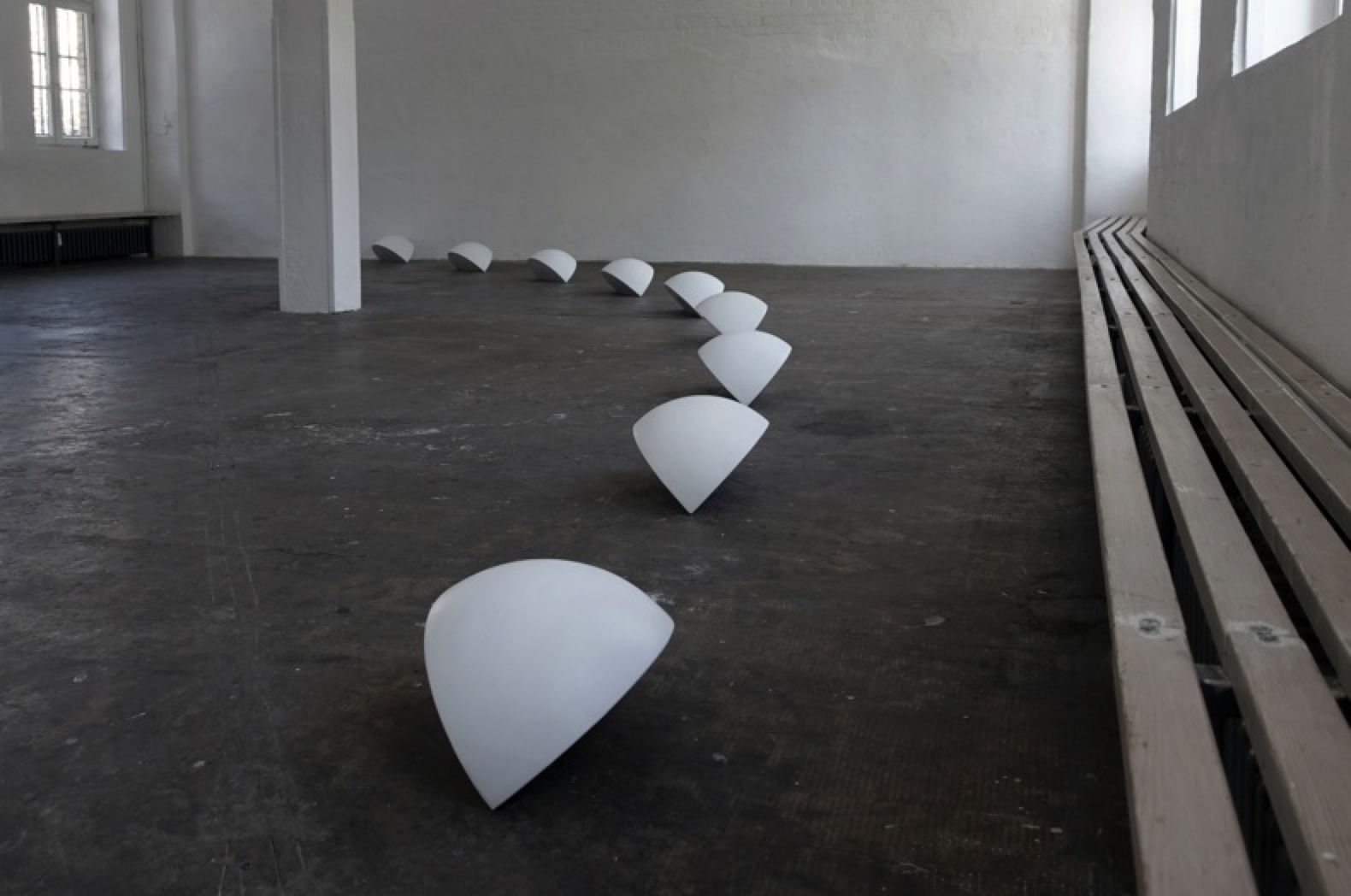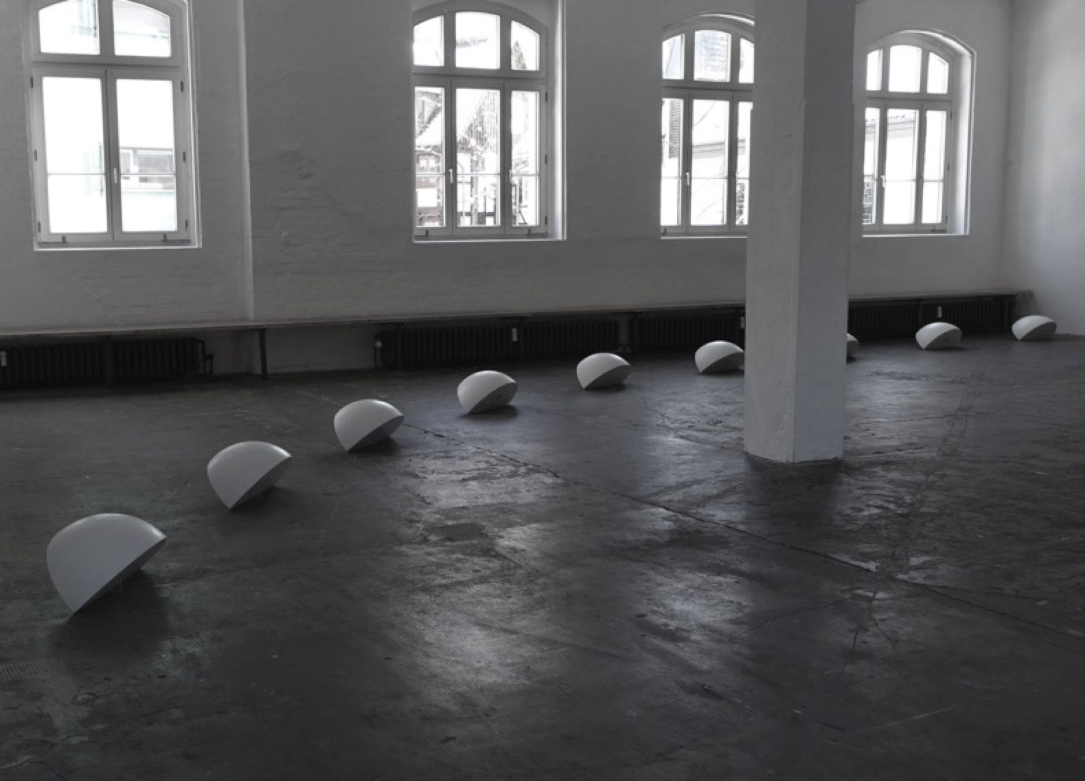 Out of white quarter spheres with built-in loudspeakers you can hear an electroacoustic 8 channel composition.