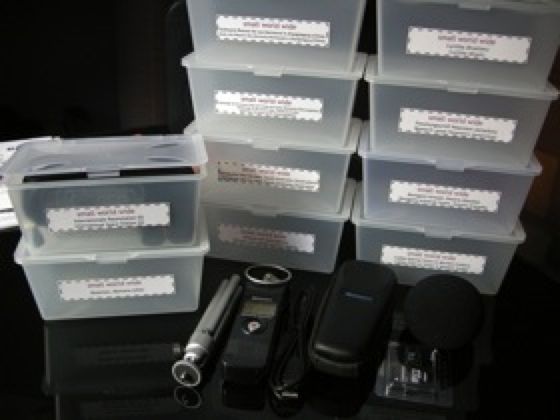 Die Rekorder sind in kleinen Boxen unterwegs, in denen sich neben dem Aufnahmegerät auch ein kleines Stativ, ein Windschutz für das Mikrofon, mehrere Speicherkarten und eine kurze Erläuterung des Projektes befinden.
